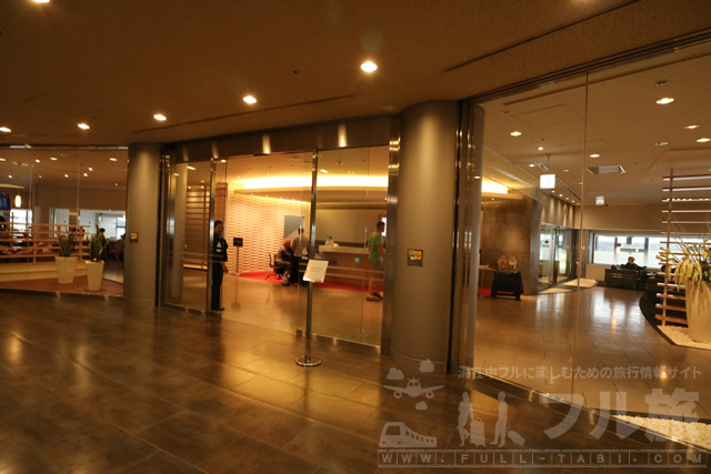 成田航空のデルタスカイクラブ入り口です。受付カウンターを正面に左右にラウンジが広がっています。左奥のほうが広くなっていて、右側はそれほど奥行きもなく狭い印象。今回は右側に入ってみました。