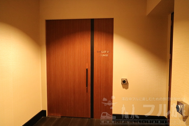 一瞬わかりにくいですが、このドアの奥がエグゼクティブラウンジです。ドアにある黒い丸い部分にカードキーをタップするとドアが開きます。