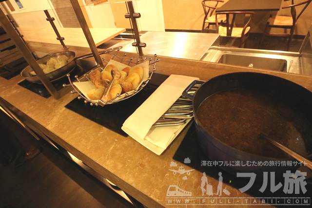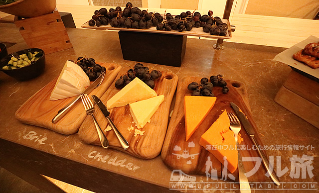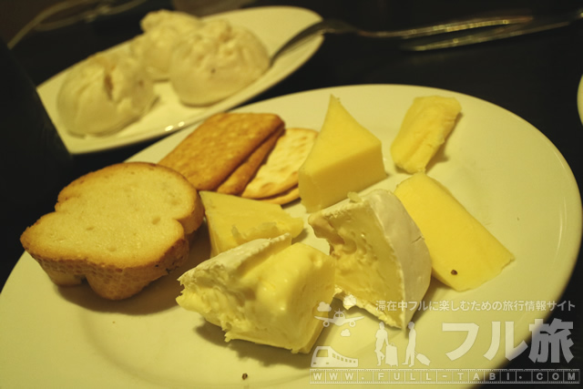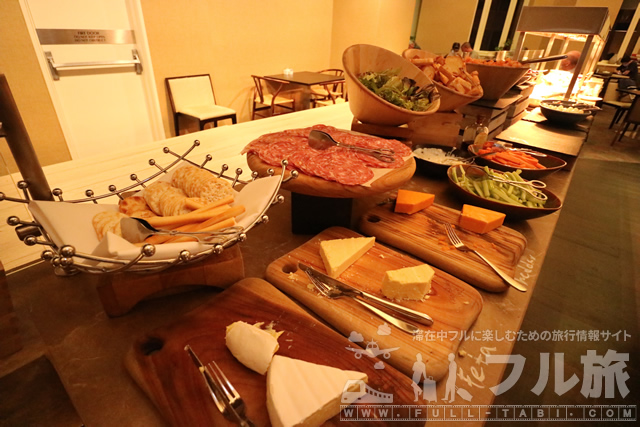 チーズ類もしっかり揃っています。毎食海外のビュッフェではチーズが置いてあることが多く、欧米では欠かせないのかもしれないですね。できれば薄めにスライスしてあったほうが食べやすくて良いですね。