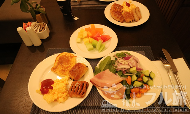というわけでホテルに朝着いてアーリーチェックイン後、何も食べていなかったのでエグゼクティブラウンジで軽食をとることができました。もう少し早ければ朝食の時間帯でした。