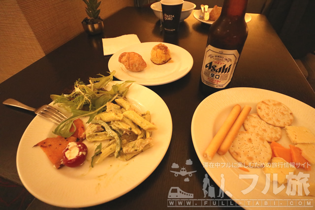今回もサラダ中心にビールのおつまみを揃えてみました。2日目はスーパードライがあったのでこちらを選んでみました。種類はある程度ありますが、さすがに物足りなさを感じたので食事とは別に軽食として食べて、そのあと夕食を外に食べに行くのがベストだと思います。しかしながらビール飲み放題はビール好きにとっては最高ですね。