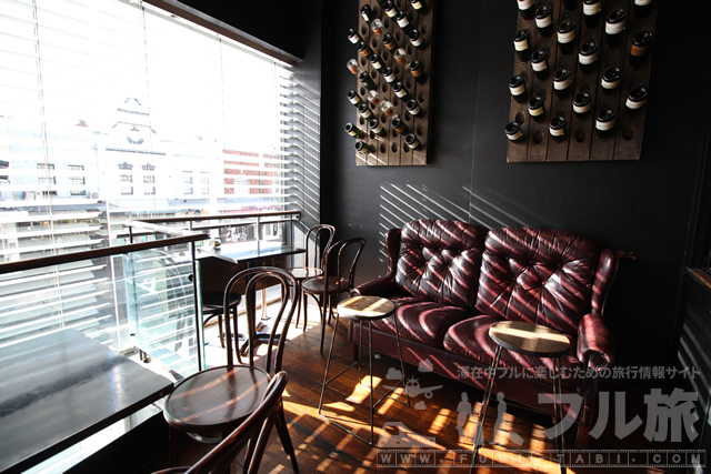 丁度1階入り口の真上、道路沿いの窓ガラスのところにもカフェスペースがあります。明るくて暖かく居心地が良さそうなソファですよね。